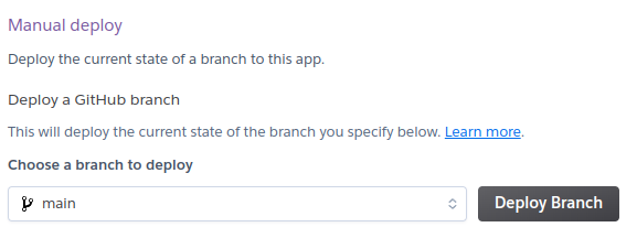 This will initiate the update but to be fully operating on the new stack, a manual deploy can be made from the Heroku interface as well by navigating to the deploy tab of the app and selecting deploy branch